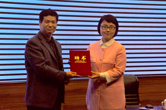 会上,郑永安为李蕾颁发“南航党校特聘教师”聘书。