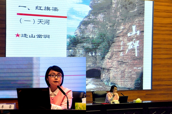 李蕾围绕“红旗渠工程、红旗渠精神、弘扬‘红旗渠精神’ 做合格共产党员”等三个方面,以时间脉络为主线,从历史背景、建造成因、人物故事、发展现状等多个侧面,生动展示了当年红旗渠建设过程中万人参战、感天动地的壮美画卷,深刻诠释了以“自力更生、艰苦创业、团结协作、无私奉献”为内核的红旗渠精神。在近三个小时的演讲中,林州党员干部带领人民修建红旗渠的艰苦历程和感人事迹,深深震撼着在场的每位南航师生的心灵。