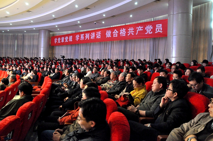 4月7日,我校“两学一做”学习教育动员会暨专题党课在将军路校区举行。校党委书记郑永安作“两学一做”学习教育动员。红旗渠干部学院特聘教师、林州市风景名胜区管理委员会副主任李蕾做《弘扬“红旗渠精神” 做合格共产党员》专题党课。会议由校党委副书记、副校长陈夏初主持。校领导、校长助理,全体处级干部,教工党支部书记、学生党支部书记,各院级党组织组织员、组宣干事等参加会议。