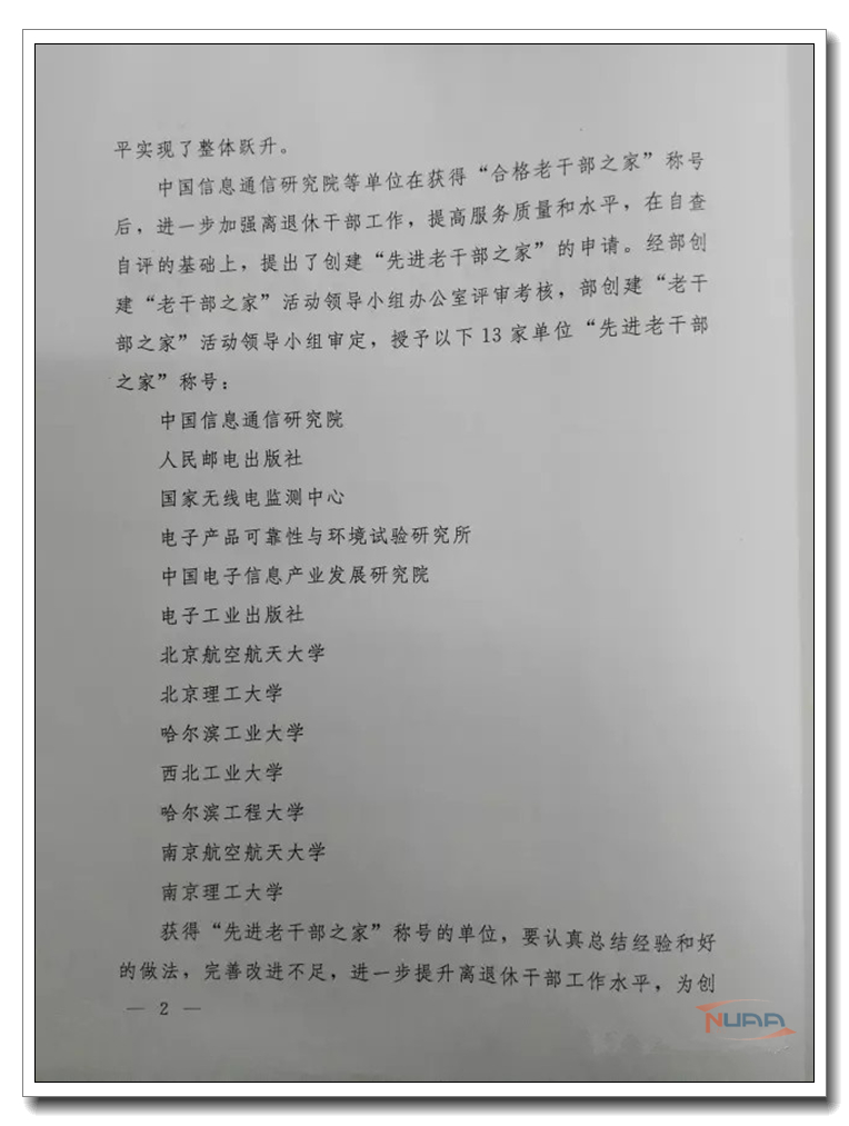 工业和信息化部近日发文,正式授予我校等13家工信部所属单位“先进老干部之家”荣誉称号。