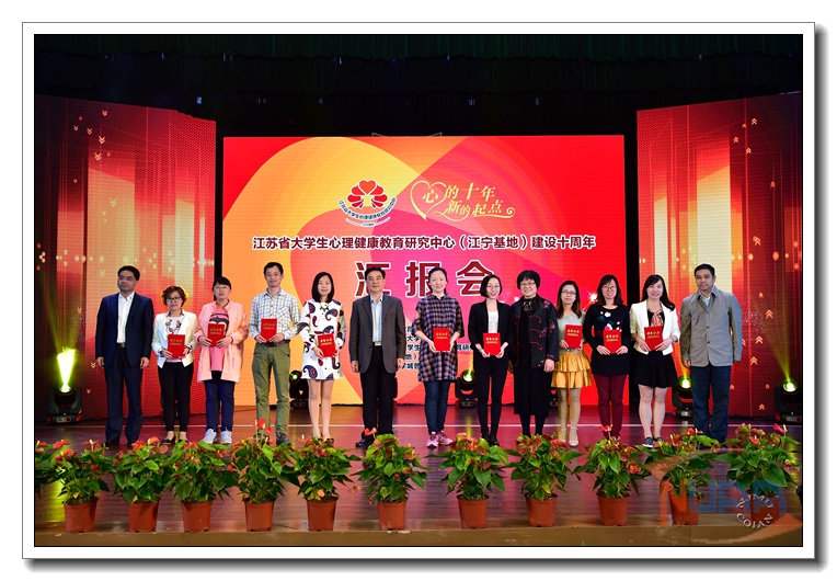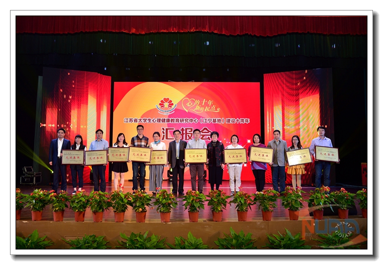 5月20日晚,江苏省大学生心理健康教育研究中心(江宁基地)建设10周年汇报大会在南京医科大学隆重召开。江苏省大学生心理健康教育专家指导委员会主任委员桑志芹、江苏省教育厅学生处副处长许正亚、江宁基地各大高校心理中心分管领导和负责人、各校学生代表参加了会议。大会全面总结了江苏省大学生心理健康教育研究中心(江宁基地)建设十周年所取得的成绩,对不懈推动江宁基地大学生心理健康教育工作方面做出突出贡献的单位和个人进行了表彰。我校心理健康教育中心工作特色鲜明,成效显著,被评为2006-2015年度江宁大学城心理健康教育工作先进集体。同时,我校心理健康教育中心的陈瑜老师获“江宁大学城心理健康教育优秀青年工作者”。