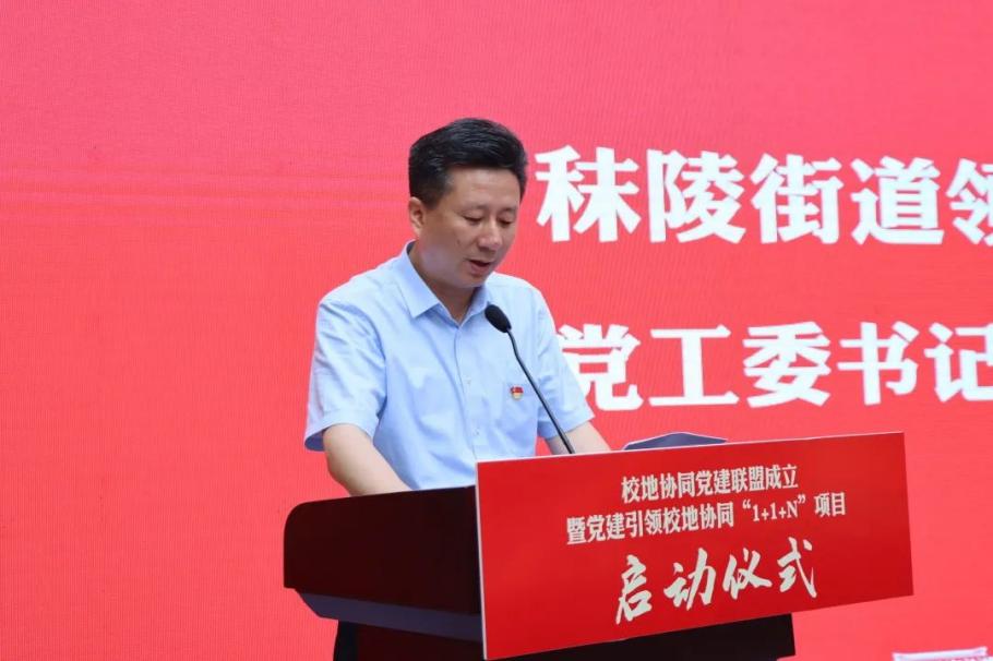最后,秣陵街道党工委书记程杰恒代表街道党工委热情展望了校地融合共建下的工作新格局。他表示,秣陵街道将与共建单位坚持同心同行,坚持互惠互赢,坚持共建共治,深入推进校地协同党建联盟项目,推动校地资源共享,实现高校学生参与社区服务、社区书记指导其社会实践的良性互动,实现高校资源与企业需求、人才引育、产学研合作的无缝对接,共同凝聚起党建引领高质量发展的新动能。